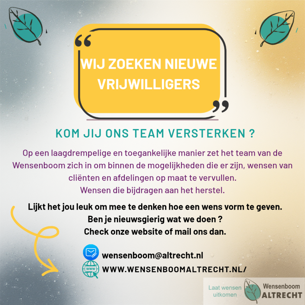 Zou jij het leuk vinden om onze nieuwe vrijwilliger te worden? Neem dan contact met ons op!